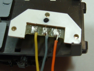 An der Platine sind schon beide Vorwiderstände für die LEDs angelötet. Ohne Vorwiderstände erleiden die einen jähen Tod. Warum man nicht gleich Vorwiderstände auf der Märklin-Platine vorgesehen hat, bleibt unklar. |